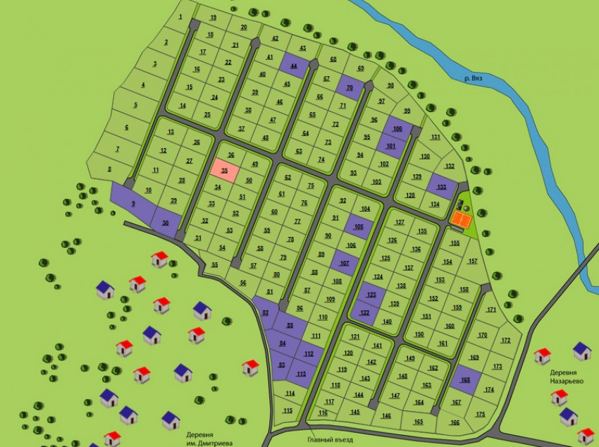Новый поселок занимает территорию более 15 гектар, размер землевладений начинается от 7 соток. Предлагаются они застройщиком без подряда, необходимые для начала работ коммуникации подведены, документы о собственности подготовлены.