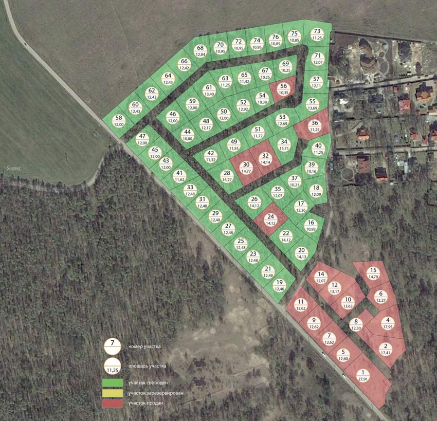Поселок небольшой, всего 74 землевладения, реализуются они без подряда, все подводимые коммуникации - центральные.