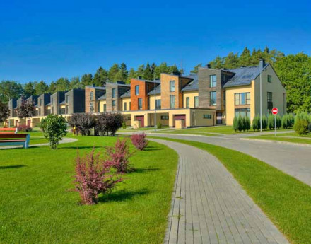 Поселок многоформатный — территория застроена сблокированными двух- и трехэтажными коттеджами и многоквартирными домами. Все здания выдержаны в ярком современном стиле, а при их строительстве использовались новейшие технологии и качественные экологичные материалы. Привлекают внимание фасады с витражным остеклением и отделкой из натурального камня и дерева.