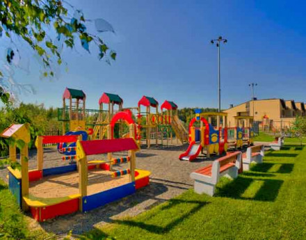Оформлена зона отдыха со спортивными и детскими площадками. Рядом с КПП имеется гостевой наземный паркинг и автомойка.