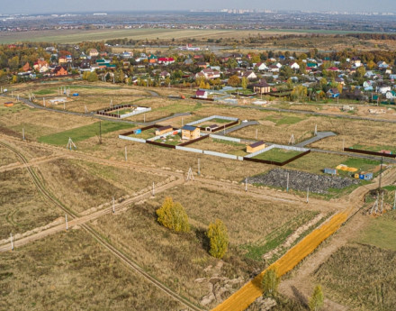 Землевладения — их размер начинается от 8 соток, предлагаются без строительного подряда. В поселок проведено электричество, готовы внутренние дороги и въездная группа с постом охраны.