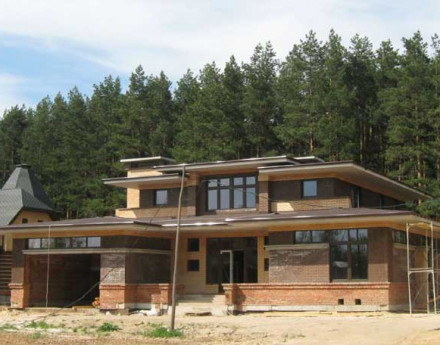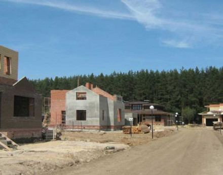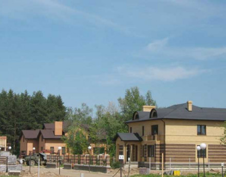 «Новая Москва» застраивается коттеджами и дуплексами, выполненными в едином архитектурном стиле. Домовладения огораживаются кирпичными заборами, при оформлении которых использовались кованые элементы.