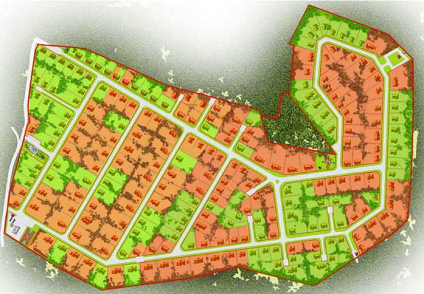 Территория разделена на 152 участка размером от 5 до 15 соток. Предлагаются они со строительным подрядом или уже готовыми домами площадью от 126 до 260 кв. метров. Помимо классических коттеджей, здесь можно приобрести дуплексы — сблокированные дома на двух хозяев.