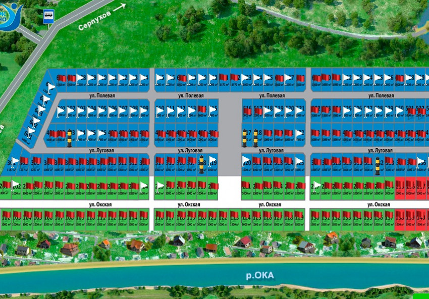В первой очереди строительства представлено 250 участков от 10 до 17 соток. Участки «Окские луга» предлагаются без обязательного подряда на строительство, что позволит каждому реализовать именно свои мечты. Для этого в поселке проведены все необходимые коммуникации. Среди них и центральное водоснабжение, что позволяет не волноваться по поводу бурения скважины или обустройства колодца. Также коттеджный поселок «Окские луга» обеспечен электричеством, газом, телефоном и Интернетом, магазином, детской и спортивной площадками.