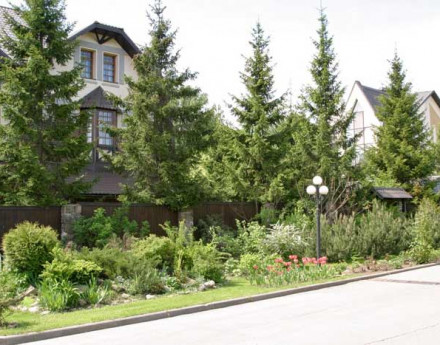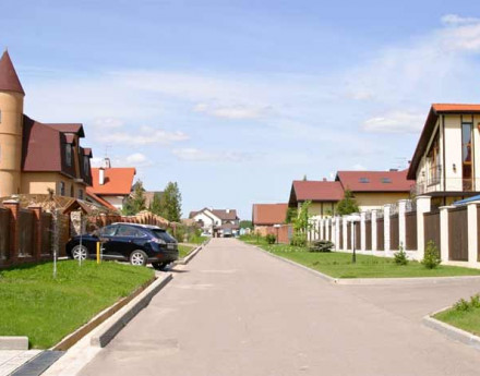 Коттеджи выполнены по индивидуальным проектам, но в единой концепции.