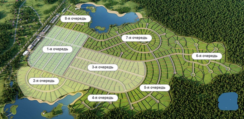 Реализация проекта ведется в семь этапов, причем каждая очередь — отдельный самостоятельный поселок, так что длительное «проживание на стройке» в данном случае исключено.