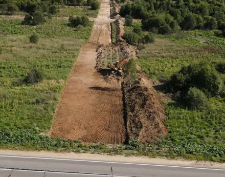 Строительство ведется в обжитом дачном месте — с трех сторон подходит лесной массив, а по границе протекает небольшая речка, образующая несколько живописных озер.