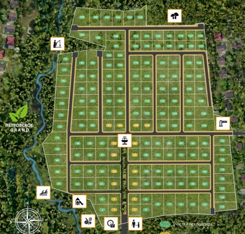 - Вторая очередь — 165 участков от 10 соток, реализуемых без обязательного подряда.
