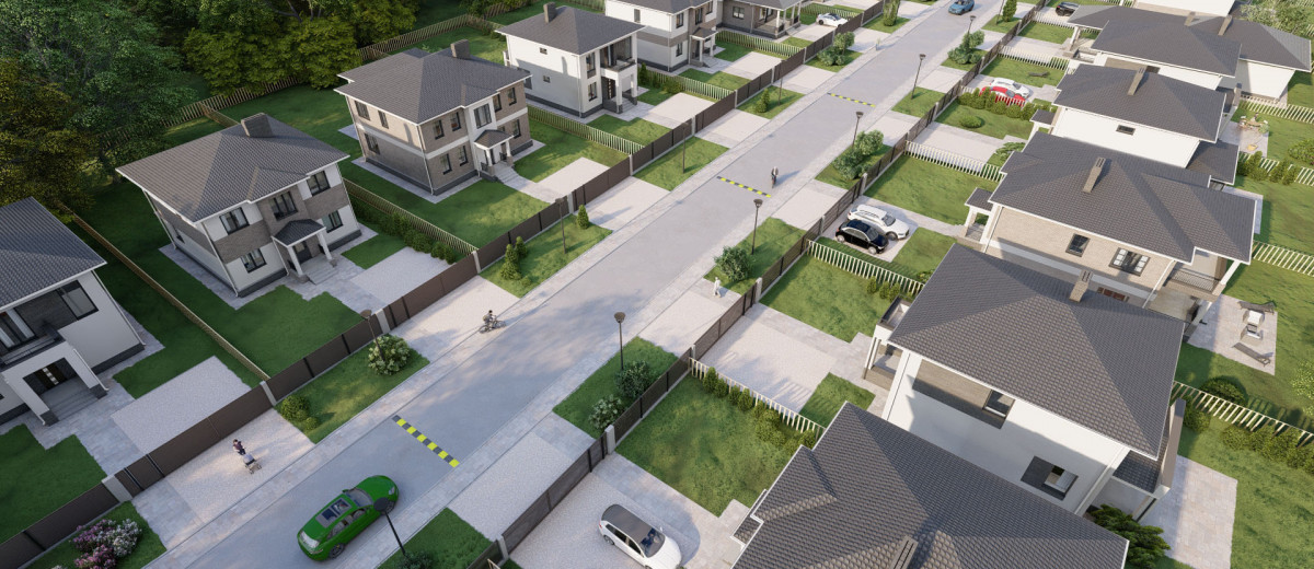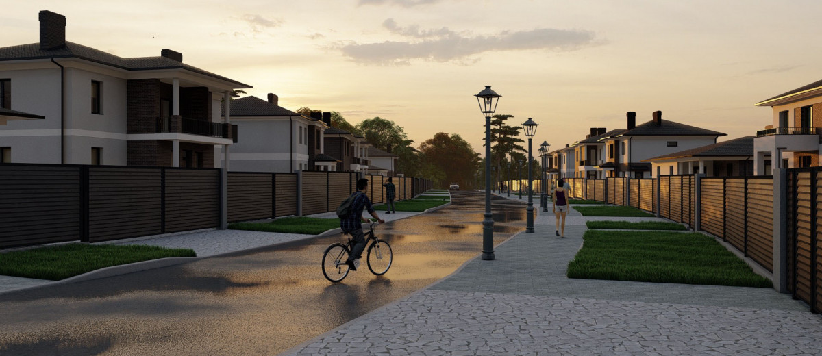 Концепция благоустройства в полной мере учитывает особенности прекрасного природного окружения — оборудуется выход в лесной массив, на территории запланирована высадка деревьев и кустарников, устанавливаются спортивные и детские площадки, оформляется зона отдыха и места для пикников.