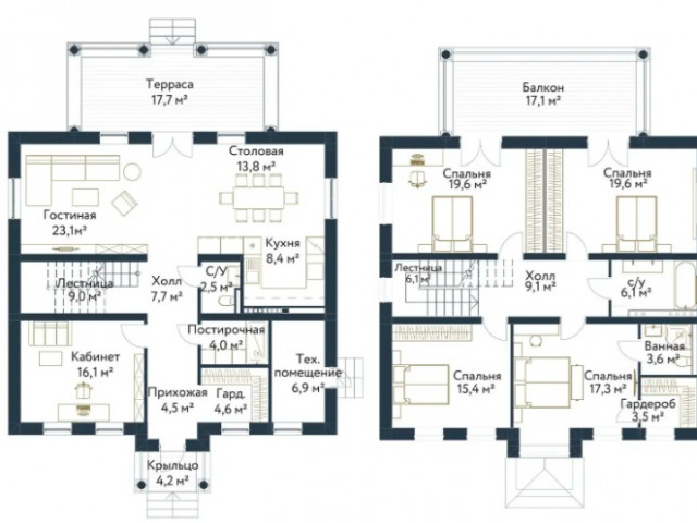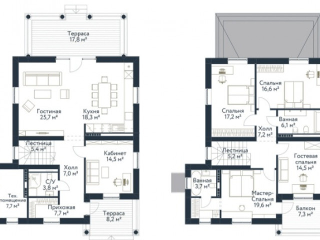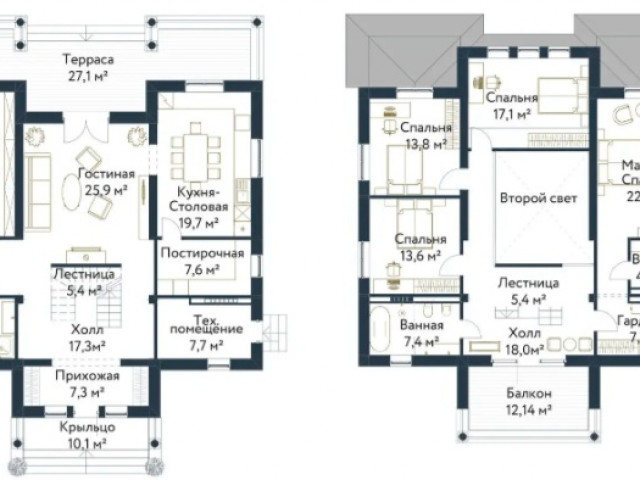 Дома от 160 до 280 м2. Участки от 7 до 28 соток.