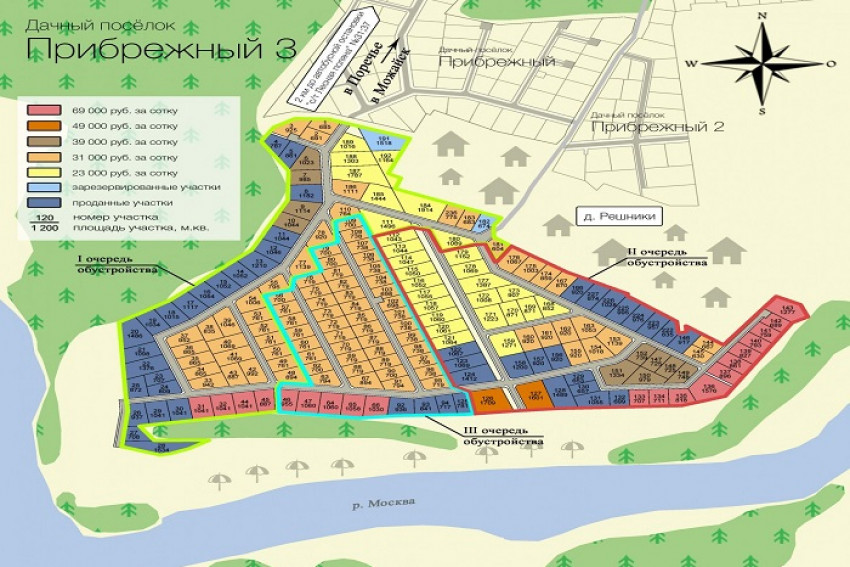 Поселок большой, застройка территории ведется в три этапа. Выбор предлагаемых без подряда землевладений весьма достойный - от небольших «дачных», до просторных, прекрасно подходящих для строительства большого дома и разбивки сада. Проведено электричество, готовы внутренние проезды, на въезде оборудован пункт охраны, так что сроки работ зависят от владельцев участков «Прибрежный».