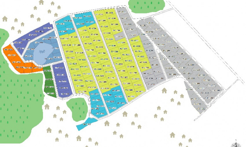 Поселок довольно большой — 180 землевладений, предлагаемых застройщиком без обязательного подряда. Можно выбрать участок «Редриковы горы» с выходом в лесной массив или к воде — по границе протекает река, образующая живописное озеро.