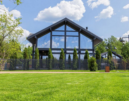 Закрытая, охраняемая территория размером более 30 гектар застраивается домами по нескольким специально разработанным проектам, в основе которых лежит стиль «фахтверк». Сплошное остекление фасадов и панорамные окна очень кстати — из большинство коттеджей «Резиденции Пестово» открываются прекрасные виды на «большую воду».