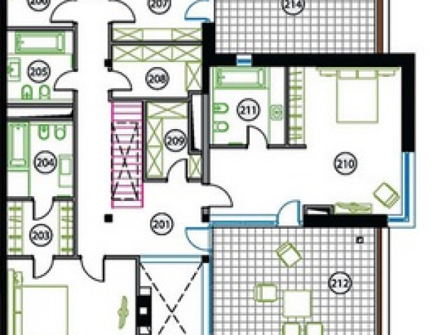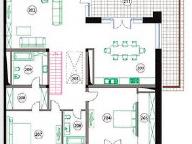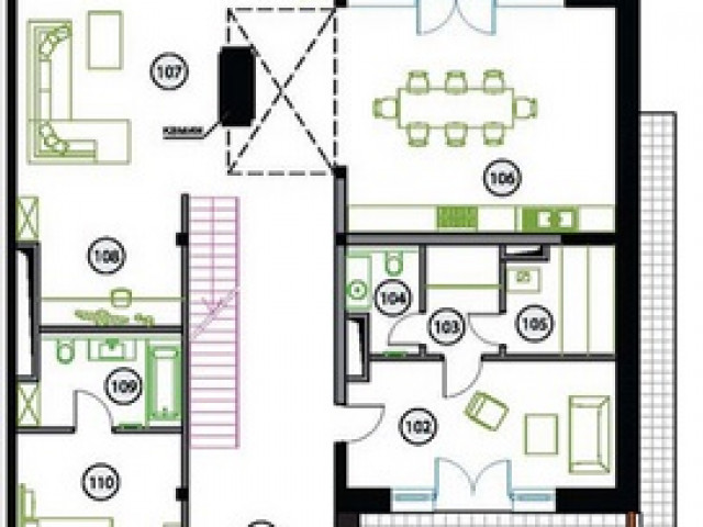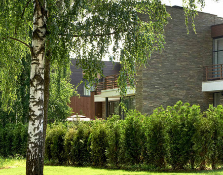 В строительстве домов использовались только натуральные строительные материалы – камень и дерево. Внутренние помещения отличаются отличной инсоляцией, благодаря большой площади остекления и в каждом коттедже установлен атриум.