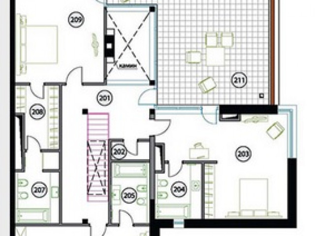 - Инфраструктура: гостевая парковка, детская игровая площадка, детский сад, зона отдыха, спортивная площадка, теннисный корт, футбольное поле