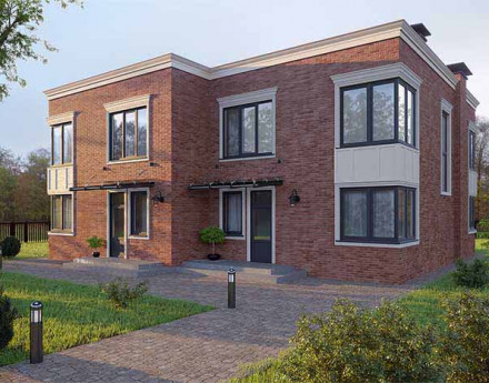 Для строительства двухуровневых коттеджей используется кирпич, кровля выполнена из металлочерепицы. Новым владельцам дома предлагаются без внутренней отделки, предусмотрены разные планировочные решения.