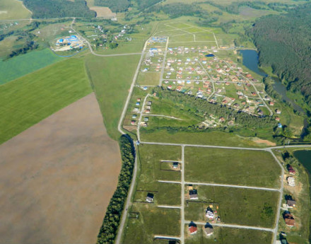 Поселок поделен на 270 участков размером от 15 до 32 соток, практически с каждого открывается красивый вид на лес или озеро. Участки предлагаются будущим владельцам с готовым домом или с подрядом на строительство. На выбор предлагаются три проекта домов из клееного бруса или газосиликатных блоков. Площадь их составляет от 118 до 300 кв. метров.