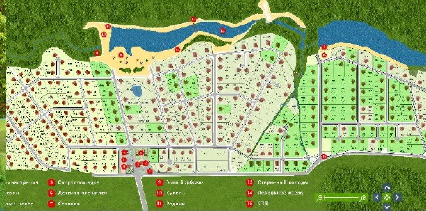 - Инфраструктура: гостевая парковка, детская игровая площадка, зона отдыха, минимаркет, пляж, спортивная площадка