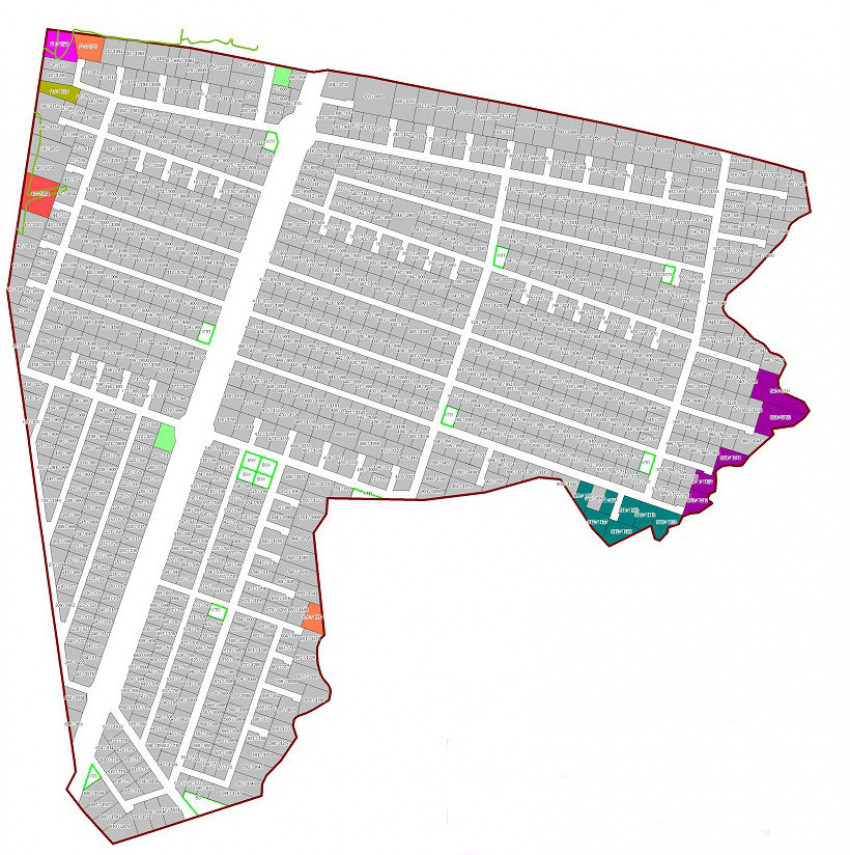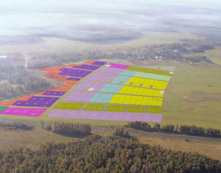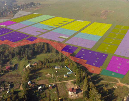 129 гектар территории разделены на 957 землевладений размером 6-20 соток. Запланированы две очереди строительства.