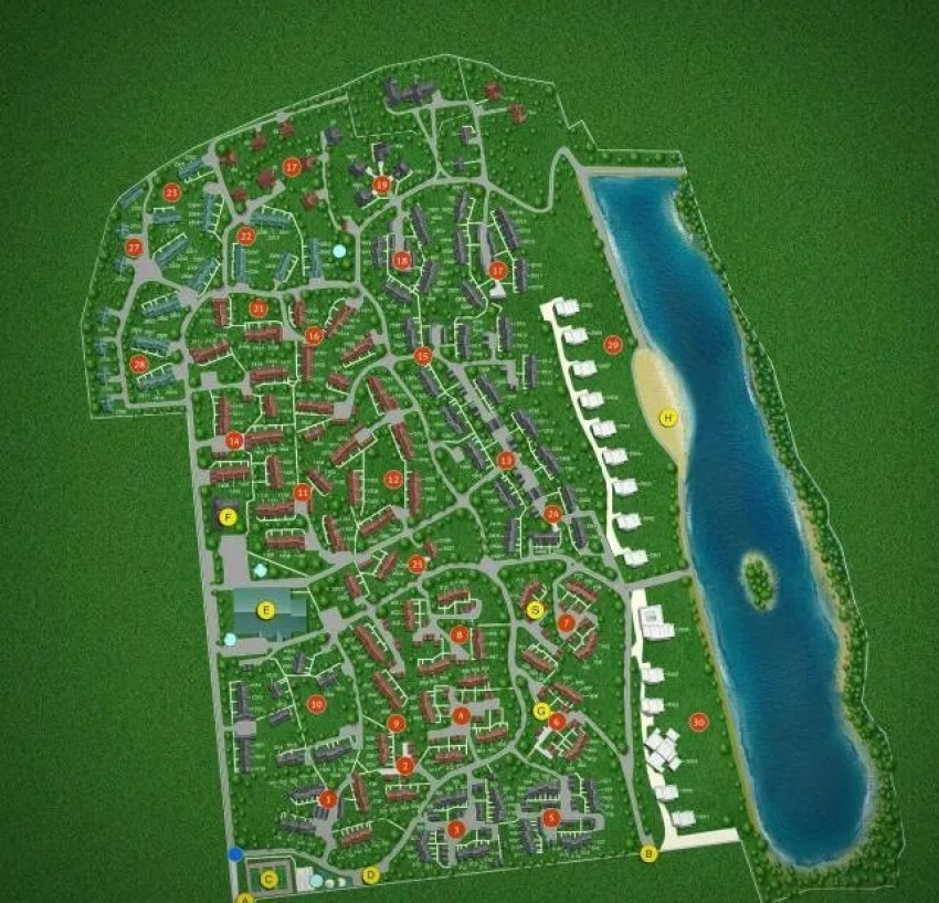 - Инфраструктура: баскетбольная площадка, бассейн, беговая дорожка, волейбольная площадка, гостевая парковка, детская игровая площадка, детский сад, зона отдыха, каток, кафе, магазин, медицинский центр, минимаркет, пляж, ресторан, спортивная площадка, теннисный корт, фитнес-клуб, футбольное поле
