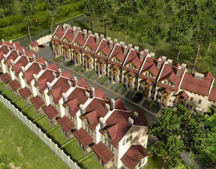 Поселок камерный — на закрытой территории расположилось всего 20 двухэтажных сблокированных коттеджей. Площадь их составляет 190, 202, или 256 кв. метров. Материал строительства — газобетонные блоки, экологичный, долговечный и достаточно простой в работе.