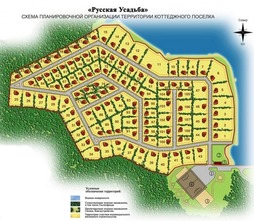 Коттеджный поселок занимает 18,5 га. Эта территория разделена на 99 участков от 8 до 27 соток.