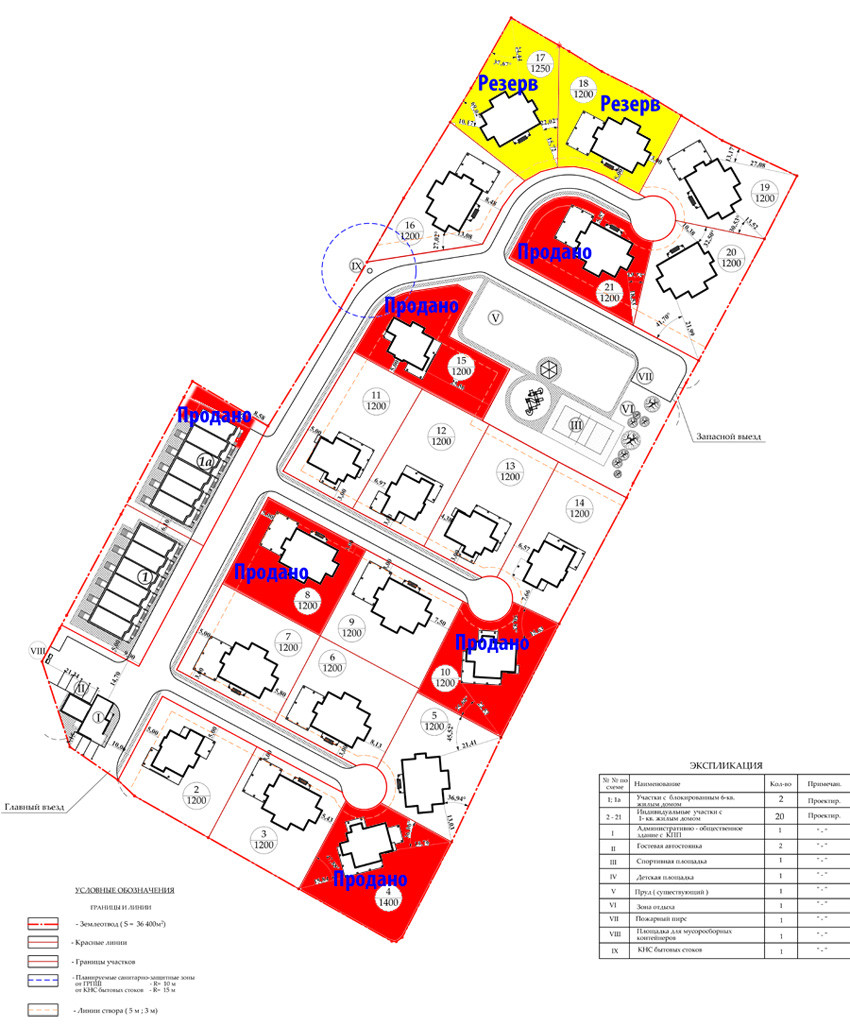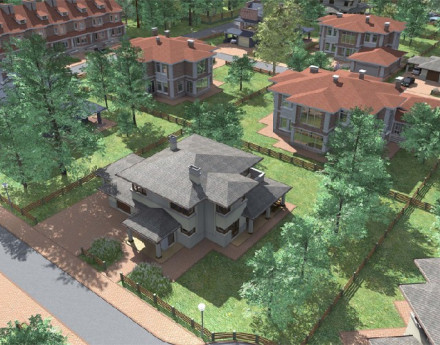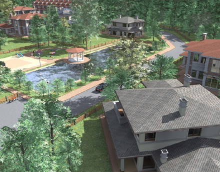 Элитный коттеджный поселок разделен на участки, средняя площадь которых составляет 12 соток. На участках размещены дома площадью от 220 до 380 квадратных метров, всего их 20. Концепция разработана известным архитектурным бюро; коттеджи строятся по трем типовым проектам, так что поселок выдержан в едином стиле.