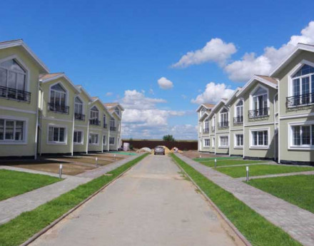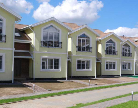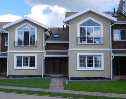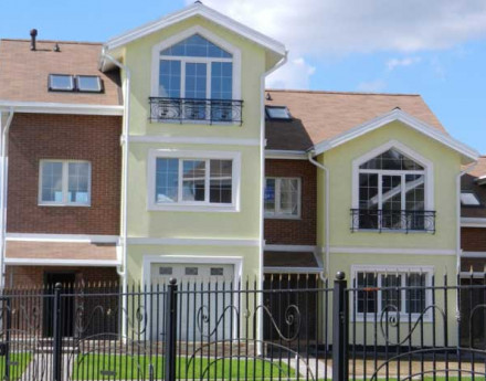 Кирпичные коттеджи двух- или трехэтажные, свободной планировки, к каждому примыкает земельный участок размером от 2 до 4 соток. Предоставляются они владельцам без внутренней отделки.