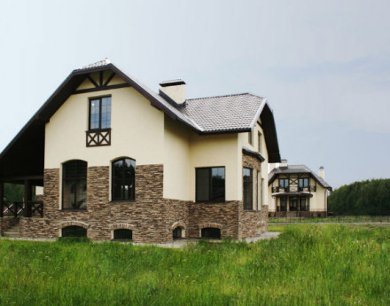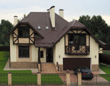 На выбор застройщиком предлагается восемь проектов кирпичных коттеджей, все они трехуровневые, с мансардой и цокольным этажом. Классический французкий стиль - богатый декор фасадов, оригинальная конфигурация крыш, теплые пастельные тона в наружной отделке, как нельзя лучше подходит к окружающим ландшафтам.
