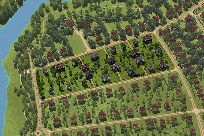 Поселок камерный, всего 34 домовладения на участках наиболее удобного для загородного строительства формата. Двухуровневые коттеджи — индивидуальные и сблокированные, на двух хозяев, возводятся по нескольким специально разработанным проектам. Все они выдержаны в классическом английском стиле.
