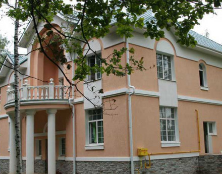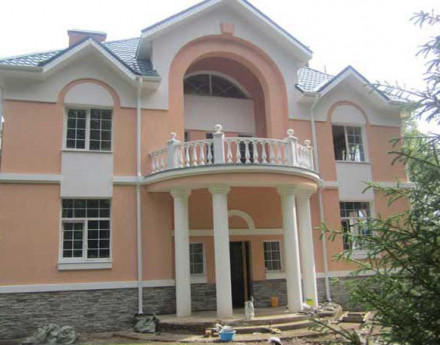 - Стены из ячеистого бетона (HEBEL Германия) обложены кирпичом (колотый камень).