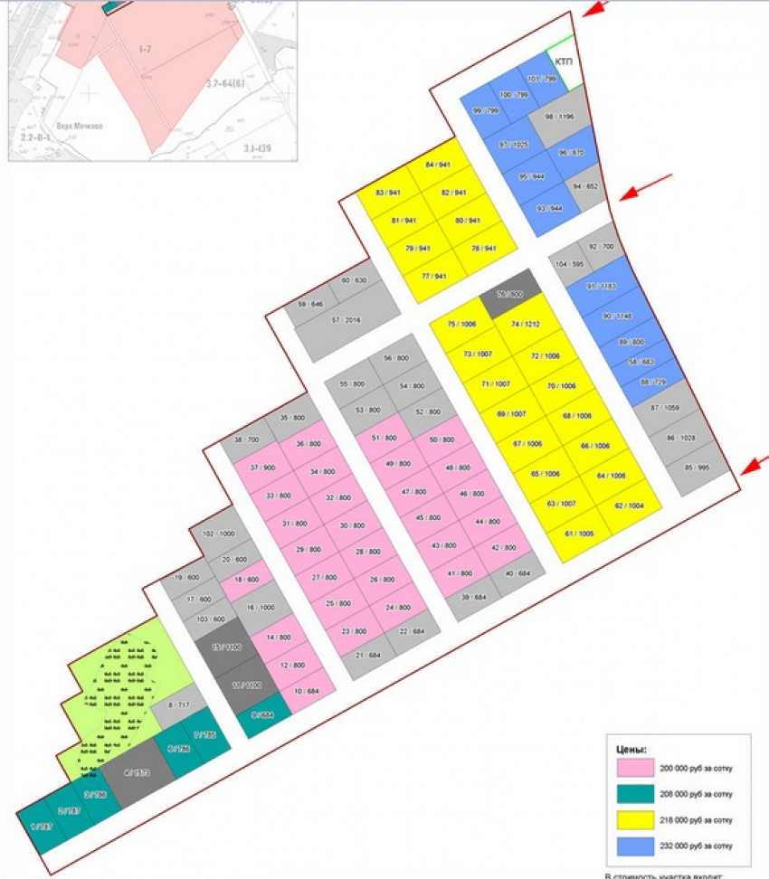 Поселок небольшой — 101 землевладение размером 6-15 соток, предлагаемое без строительного подряда. Проведено электричество, проложены внутренние проезды, есть возможность подключения газа.