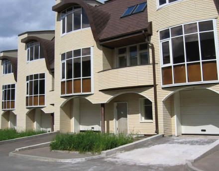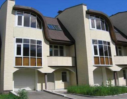 Коттеджи трехэтажные, с мансардным этажом, выстроены они по монолитно-кирпичной технологии и облицованы панелями из мраморной крошки. Внешний вид у коттеджей очень стильный, современный и запоминающийся.