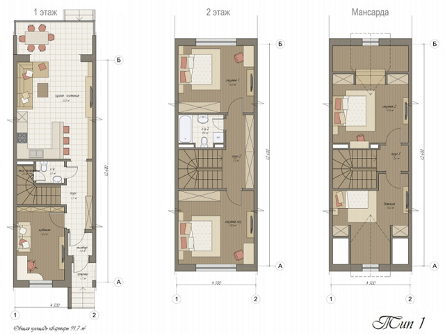 Таунхаусы площадью 135, 200 и 280 кв.м., выполнены из натуральных высококачественных материалов с превосходной отделкой фасадов.