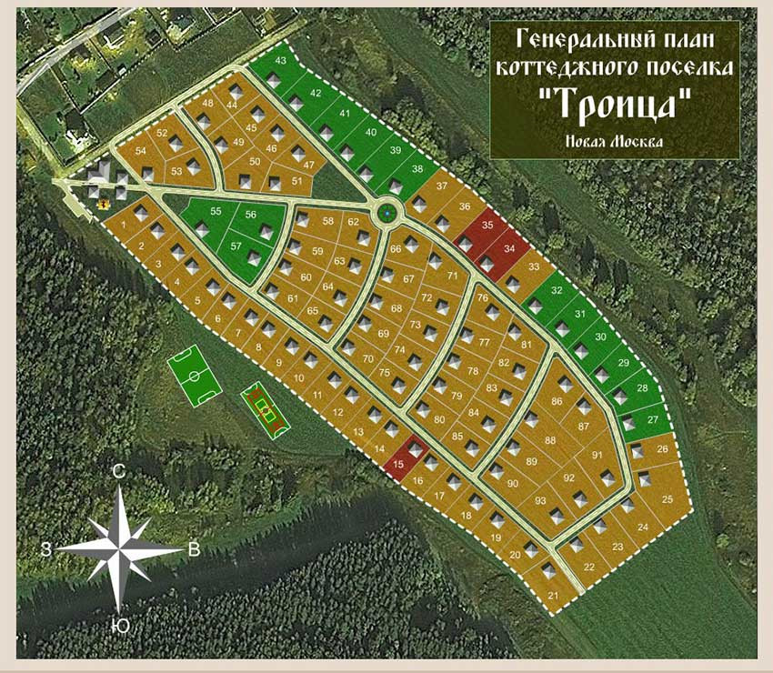 На территории Новой Москвы в 45 километрах от МКАД построен коттеджный поселок «Троица». На Калужское шоссе ведет асфальтированный выезд и дорога в столицу много времени не займет.