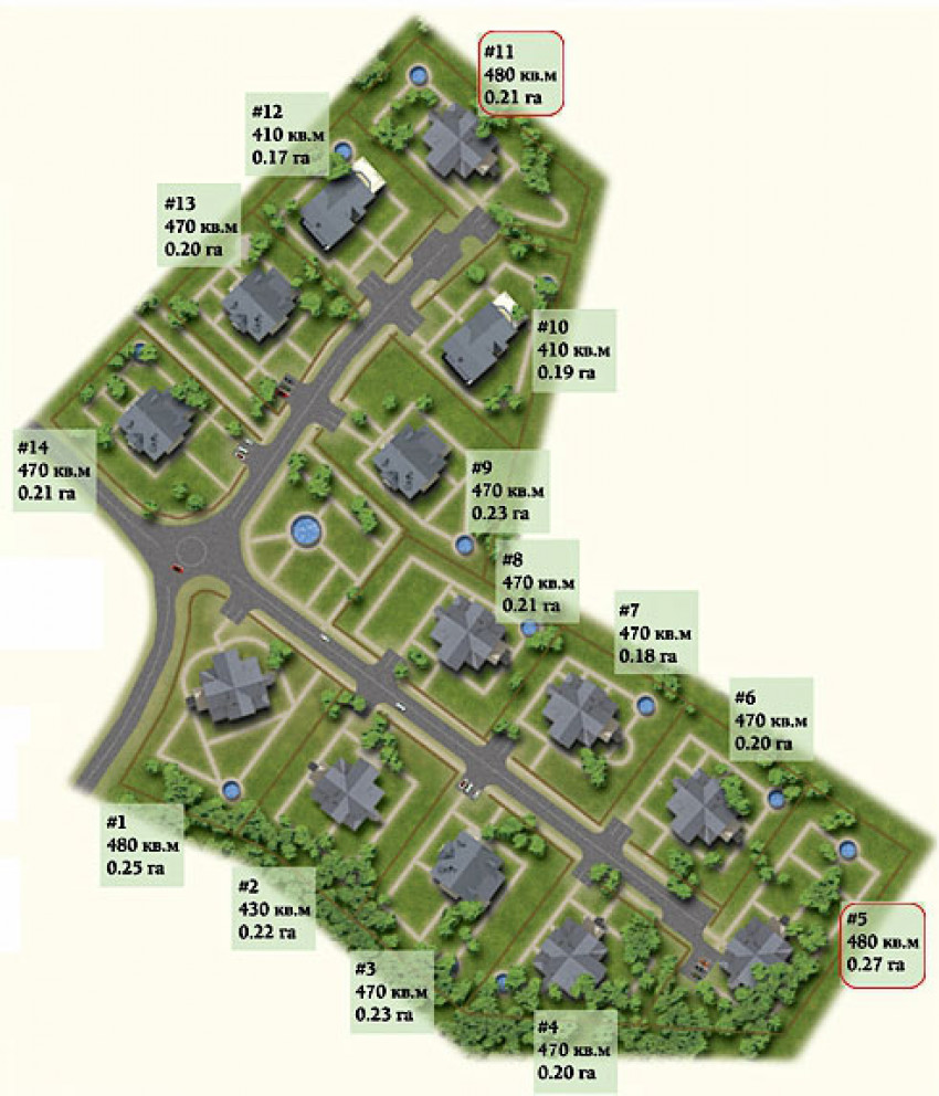 Дома от 410 до 480 м2. Участки от 17 до 27 соток.