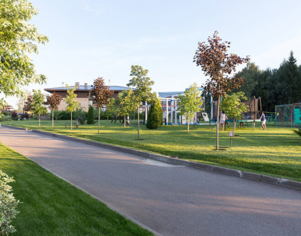 К коттеджному поселку примыкает большой, в 10 гектар, парк — прекрасное место для уединенных прогулок и семейного отдыха.