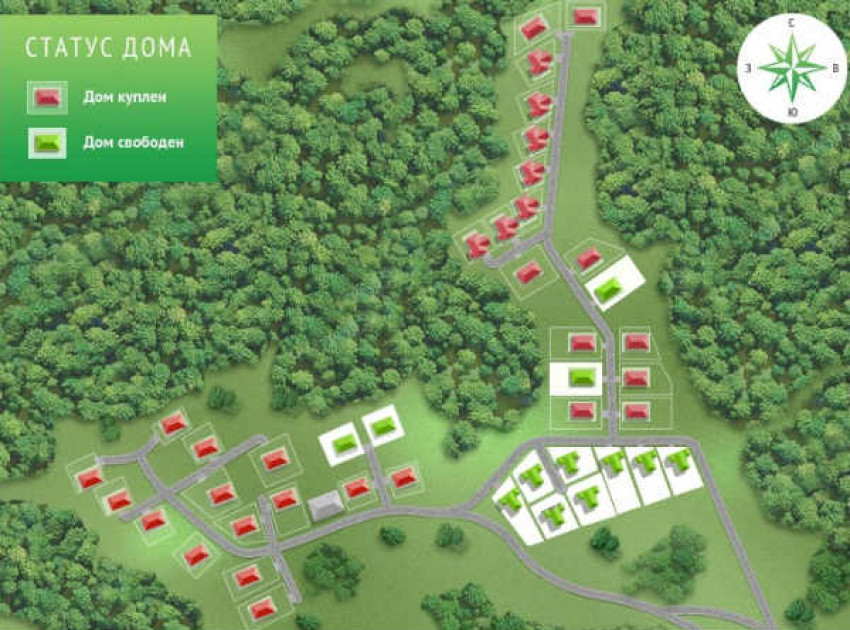 Проект поселка предполагает примерно равное соотношение жилой застройки и парковых зон. Здесь нет заборов в привычном понимании — участки разделены роскошными живыми изгородями.