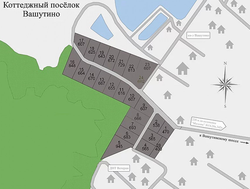 Поселок камерный - всего 23 компактных, ровных, хорошо освещенных землевладения, подготовденных для строительных работ. Предлагаются участки «ИЖС Вашутино» без подряда, с подведенными коммуникациями. Поселок огорожен и находится под охраной.