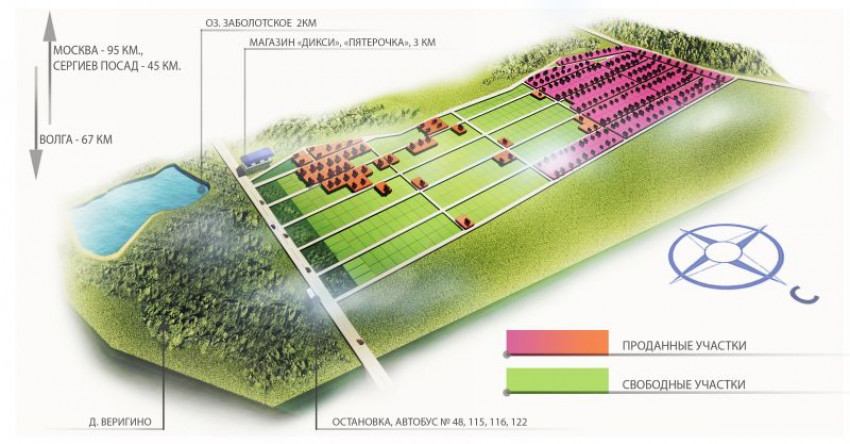 Далеко, добираться весьма проблематично, хоть на машине, хоть как. Вокруг болота, нормальные такие болота. Участков огромное количество, а куплено совсем немного.