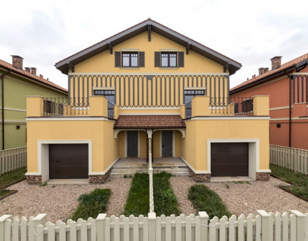 Поселок камерный — всего 9 кирпичных домов на двух хозяев, выполненных в стиле итальянской загородной архитектуры. Все они двухэтажные с просторной мансардой. Реализуются коттеджи «Вилла Фиеста» как без внутренней отделки, так и с ремонтом «под ключ» - это зависит от желания будущего владельца.