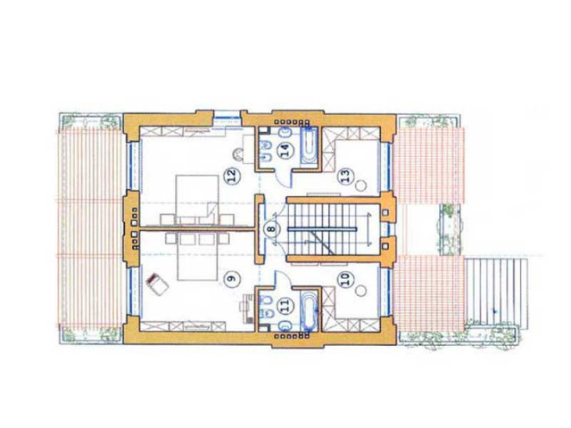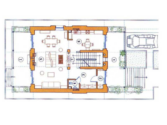 Планировкой предусмотрено устройство 4 спален, 4 санузлов, гаража на две автомашины.