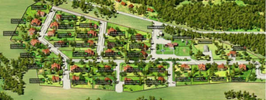 Новый поселок небольшой- территория в 12,5 гектар разделена на 66 участков размером от 10 до 19 соток. Электричество из расчета 10кВт на каждый и магистральный газ к участкам «Вишневый сад» уже подведены, проложены внутренние дороги, поселок огорожен — можно начинать строительство.