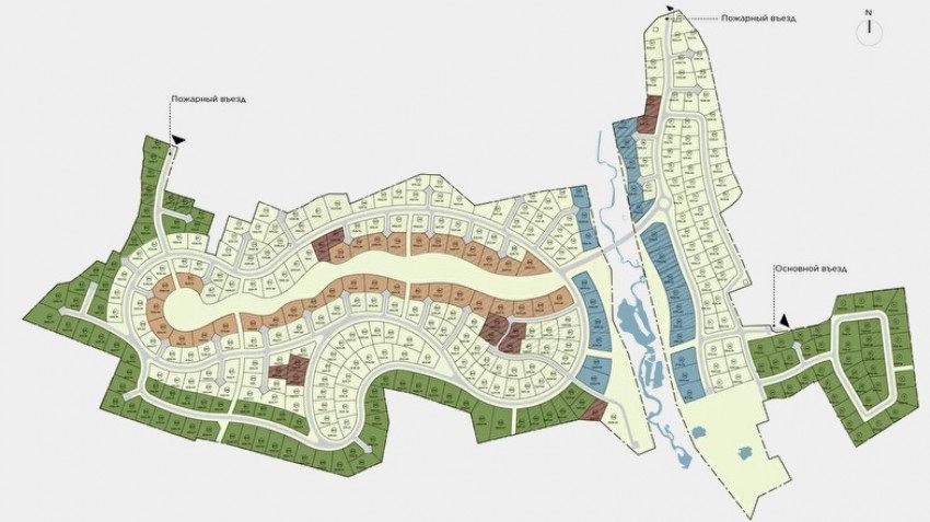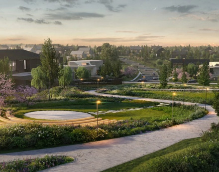 Поселок большой, причем значительная часть его закрытой, охраняемой территории отведена под общественные зоны, в том числе три прогулочных парка и объекты благоустройства — детские сад, спортивные и детские площадки, теннисные корты, беговые и велосипедные дорожки гостиницу, ресторан и многое другое.