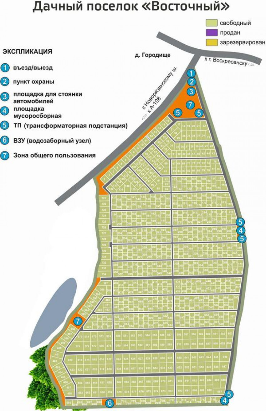В лесах Воскресенского района, на берегу живописного озера, строится дачный поселок «Восточный». Сам районный центр расположен всего в четырех километрах, еще ближе находится довольно большой населенный пункт Городище, так что проблем с инфраструктурой у жителей не возникнет.