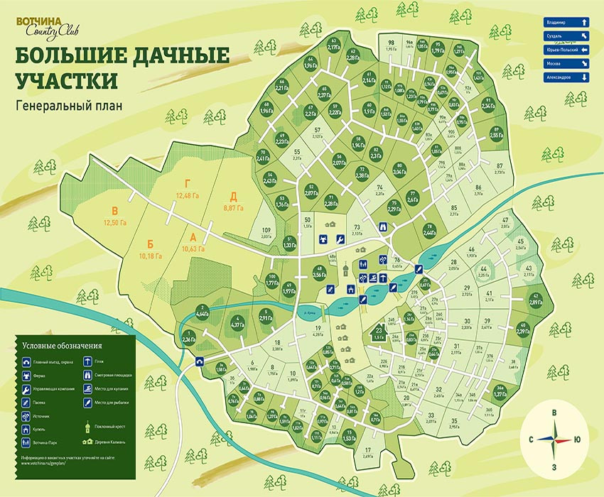 Клубный коттеджный поселок «Вотчина Кантри Клаб» расположен в 138 км от Москвы, в самом центре «Золотого кольца России» - во Владимирской области, в двух километрах от железнодорожной станции и, соответственно, от города Бавлены.