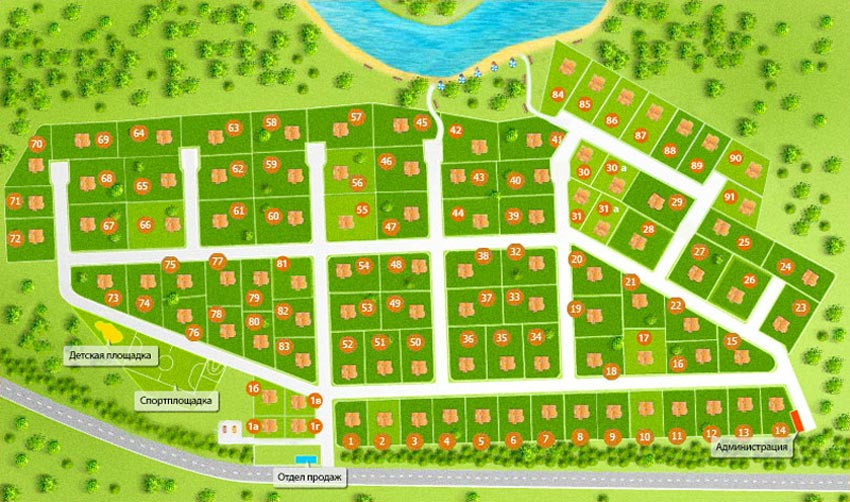 - Инфраструктура: гостевая парковка, детская игровая площадка, зона отдыха, кафе, магазин, пляж, спортивная площадка