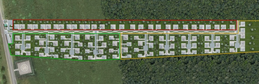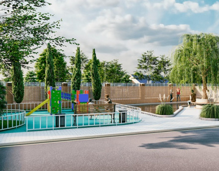 В поселке предусмотрено обширное и тщательно продуманное благоустройство, включающее частный детский сад и школу, банный комплекс, спортивные и детские площадки, места для отдыха, паркинг и многое другое.