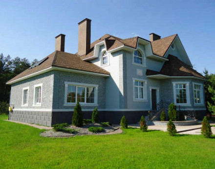 - Коттеджи площадью 545 кв. метров на участке в 45 соток, двухэтажный с мансардой и большой террасой