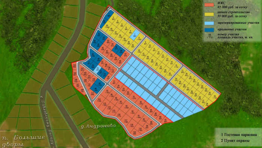 Продаются только пустые участки земли. Асфальтированных дорог нет, только песок и щебень. Инфраструктуры нет.